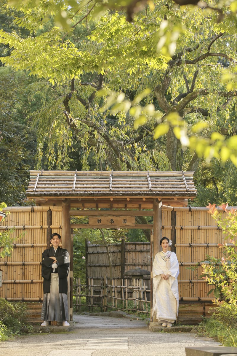 初めて甘泉園に訪れたお二人なので、門の前でお撮りしました!
