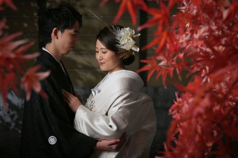 新宿店の本格的な茶室スタジオで撮影する、和装の結婚写真