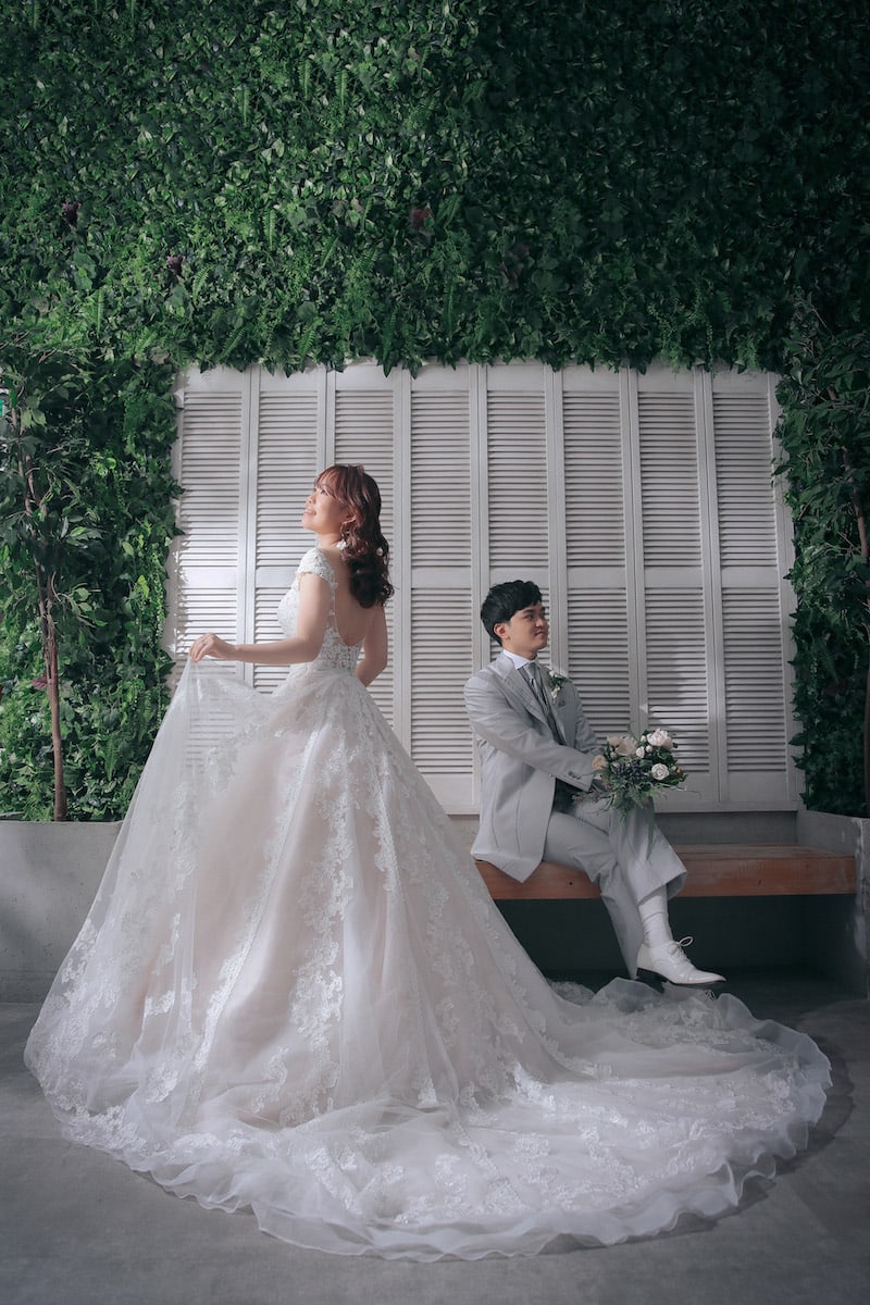 一面お花の壁が登場!新宿店ハウススタジオで撮影する洋装ウェディングフォトプラン