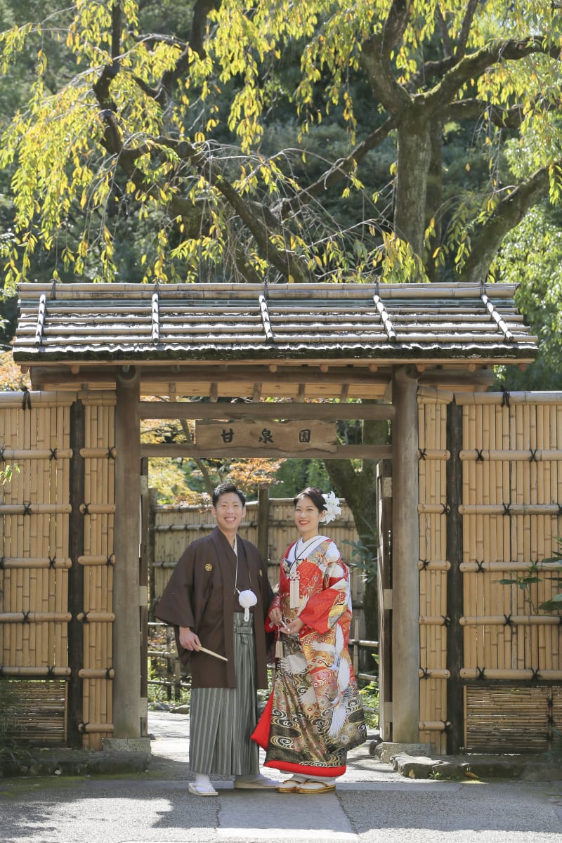 新宿店の本格的な茶室スタジオで撮影する、和装の結婚写真
