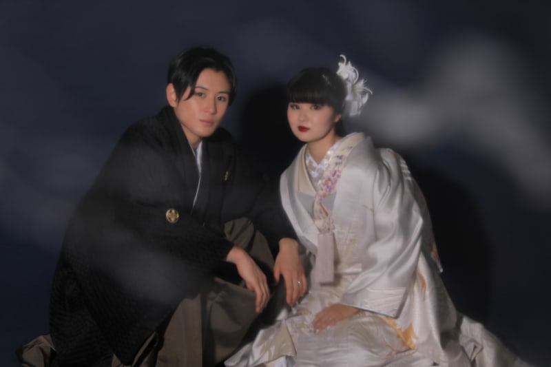 新宿店の本格的な茶室スタジオで撮影する、和装の結婚写真