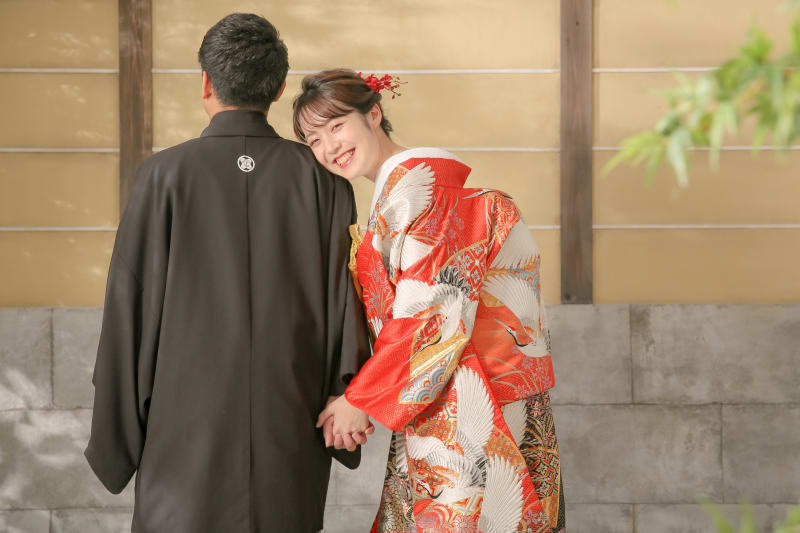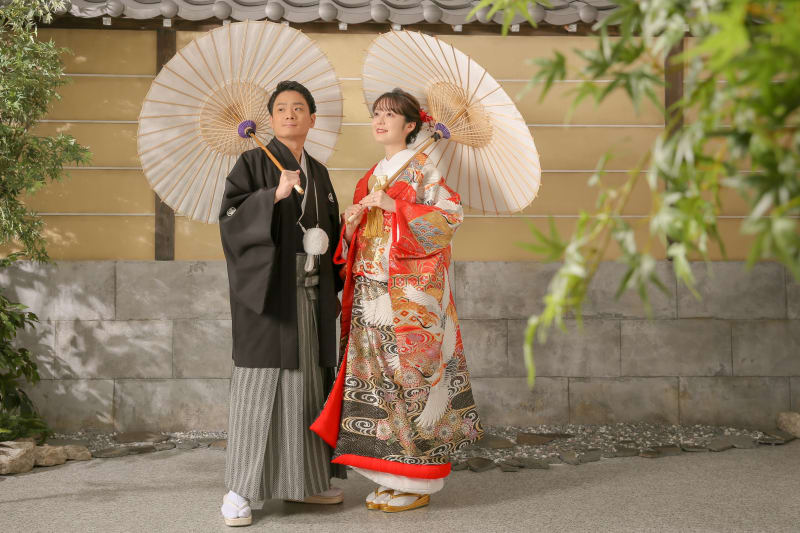 新宿店の本格的な茶室スタジオで撮影する、和装の結婚写真