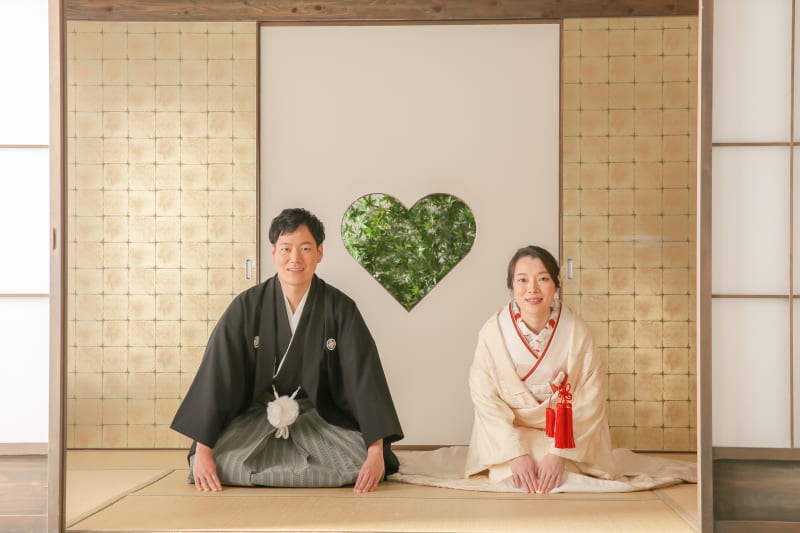 大人気のハートの猪目窓も紅葉と新緑でお撮りしました!