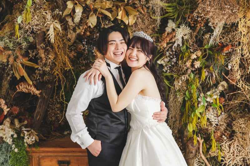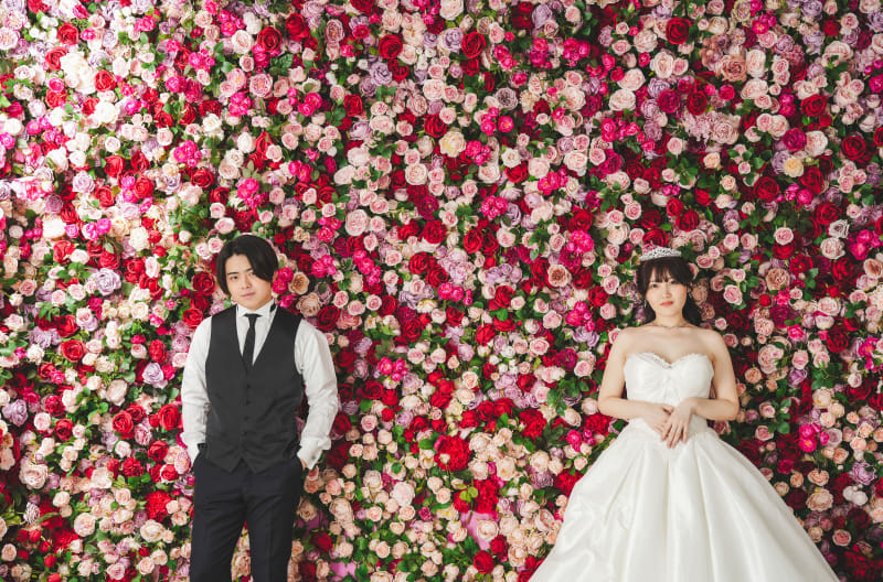 一面お花の壁が登場!新宿店ハウススタジオで撮影する洋装ウェディングフォトプラン