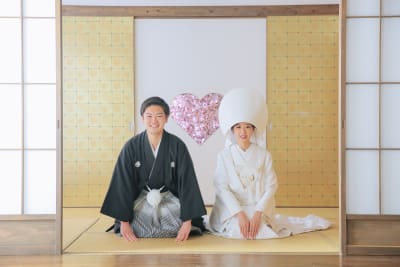 新宿店の本格的な茶室スタジオで撮影する、和装の結婚写真