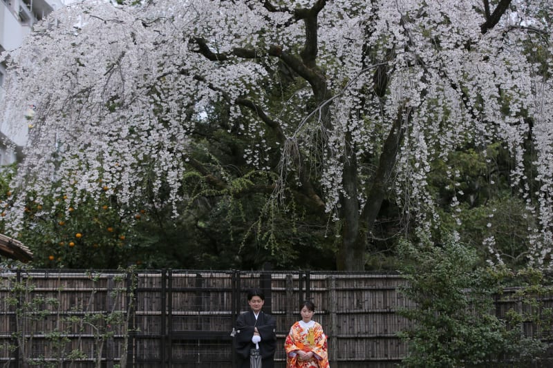 桜ロケーションのご紹介です! 新宿店のロケーション地である甘泉園には枝垂れ桜が咲き乱れます