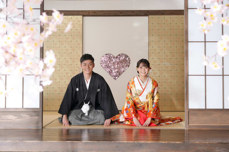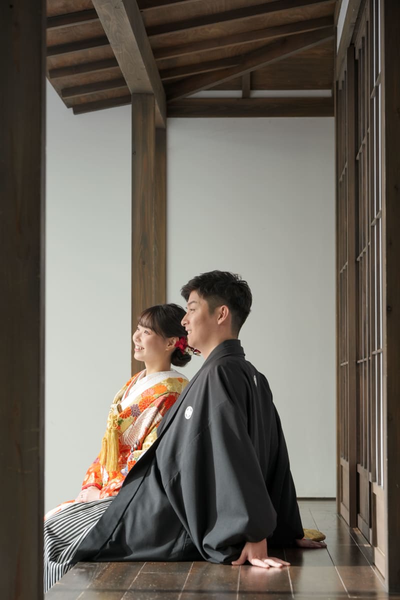 新宿店の本格的な茶室スタジオで撮影する、和装の結婚写真
