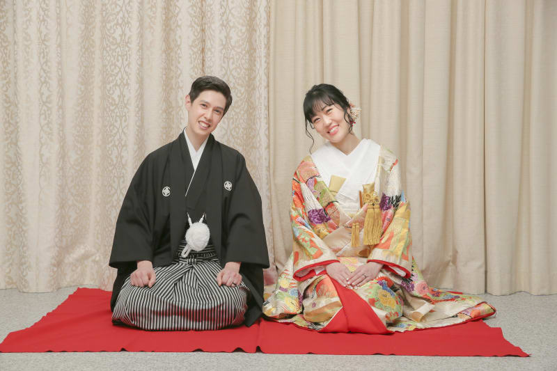 新宿店の本格的な茶室スタジオで撮影する、和装の結婚写真