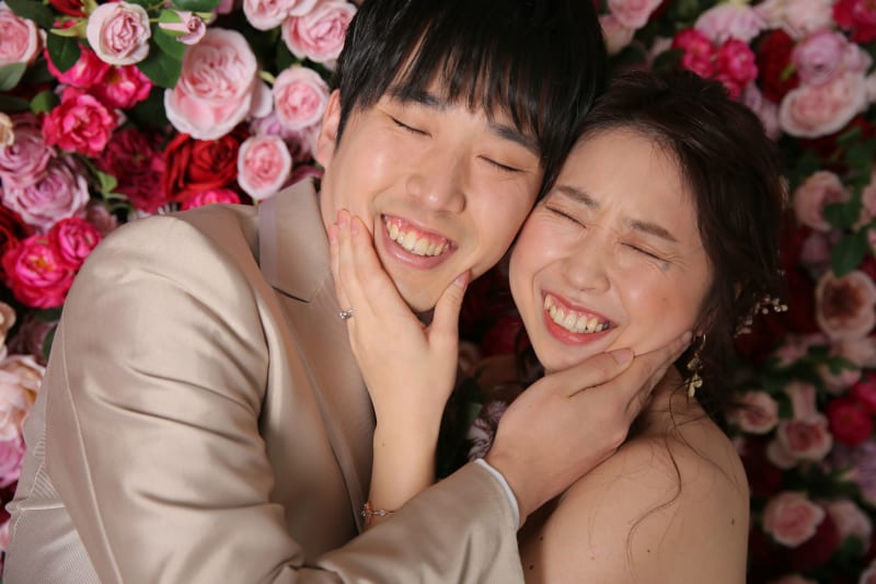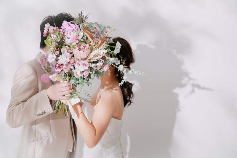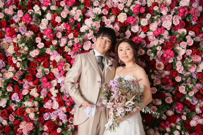 一面お花の壁が登場!新宿店ハウススタジオで撮影する洋装ウェディングフォトプラン