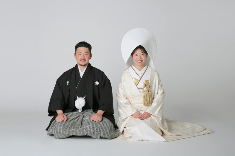 無地背景だとお二人のお衣装はもちろん、綿帽子や胸元のコーディネートも存在感をしっかり出せます^^