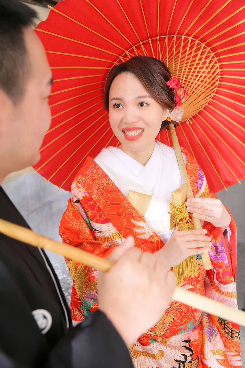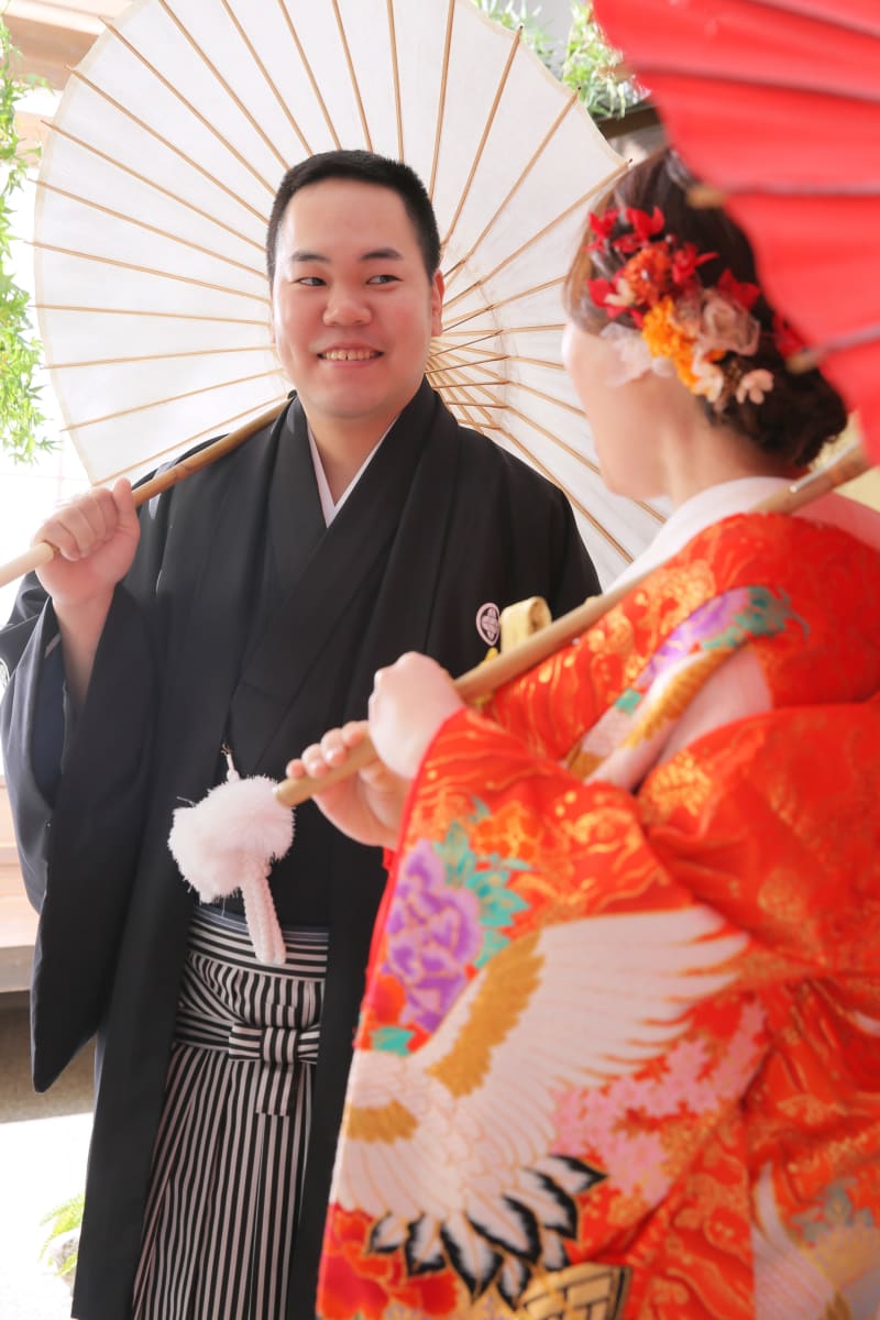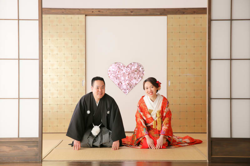 新宿店の本格的な茶室スタジオで撮影する、和装の結婚写真