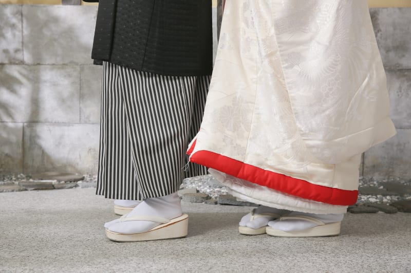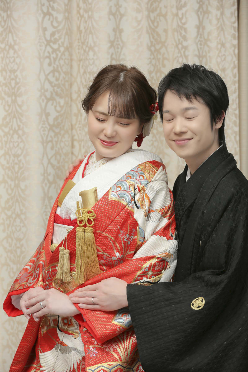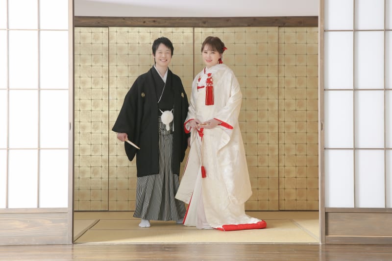 新宿店の本格的な茶室スタジオで撮影する、和装の結婚写真