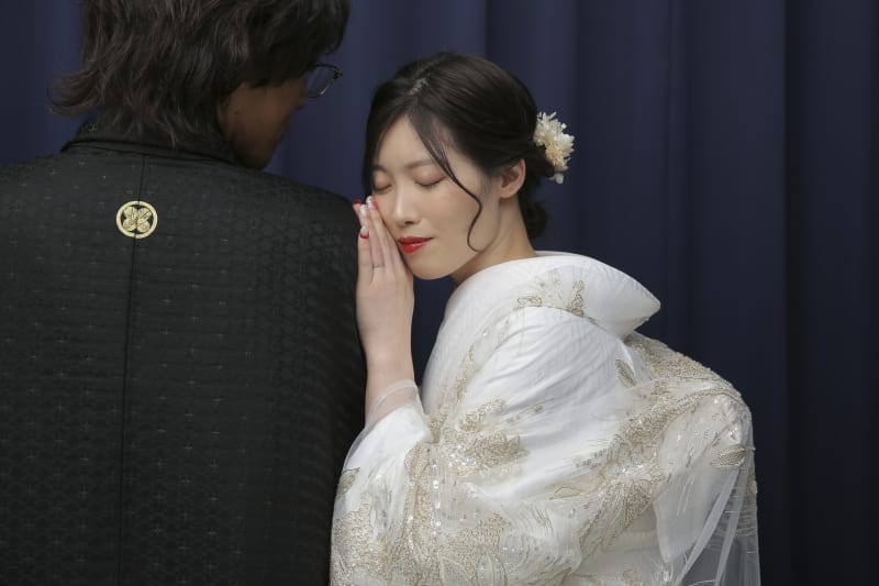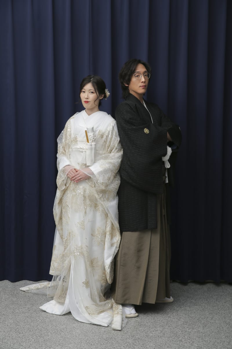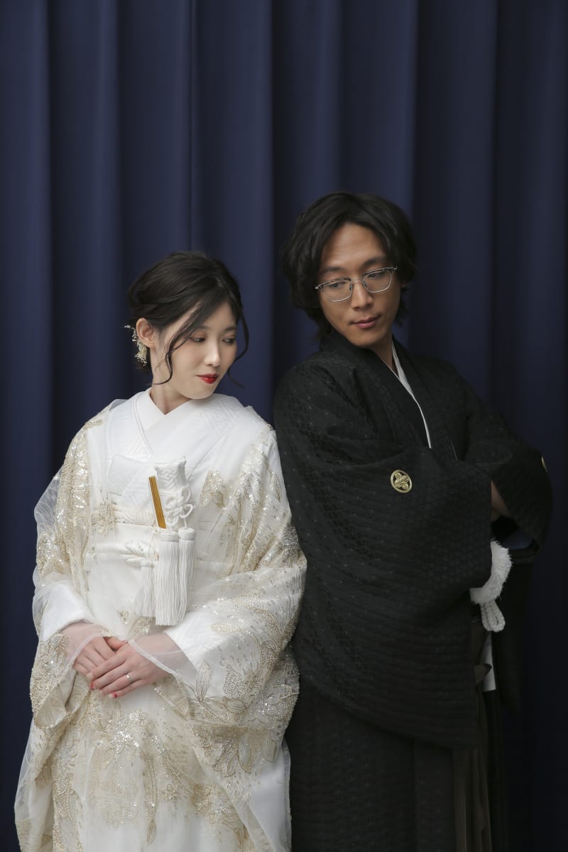 新宿店の本格的な茶室スタジオで撮影する、和装の結婚写真
