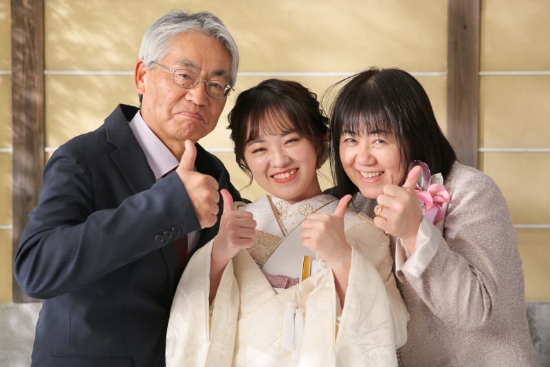 ご新婦様のご家族様はgoodのポーズで! お父様が一番に決めてくださいました! ご新婦様・お母様もつられてgoodです