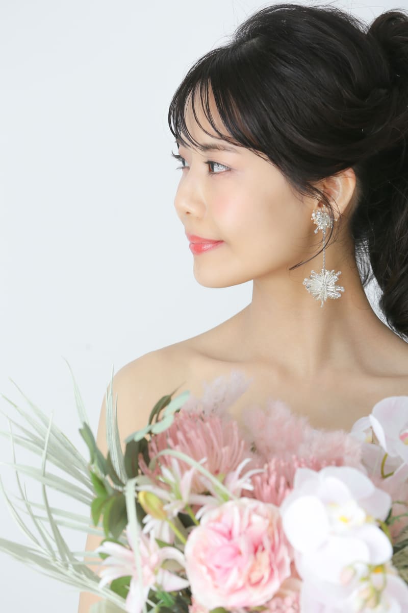 フェイスラインもとても美しく、お選び頂いたピンクのブーケがお似合いです!