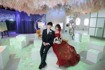 一面お花の壁が登場!新宿店ハウススタジオで撮影する洋装ウェディングフォトプラン