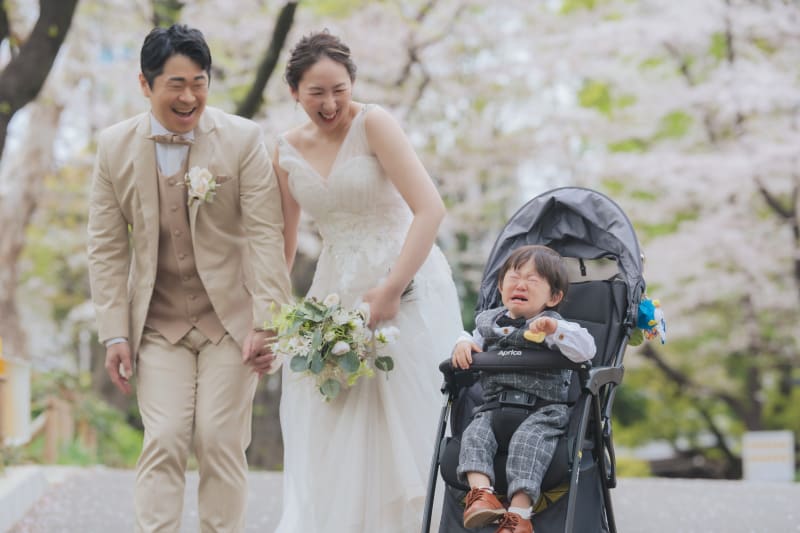 いつものパパママとは違う姿に泣きじゃくるお子さん笑。通行人の方もあやしてくれてました♪