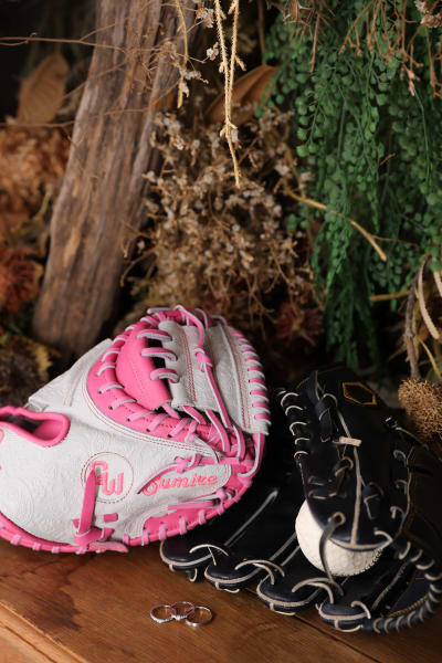 ご新郎様がピッチャーをしていたこともあり、送られたのはお名前入りのキャッチャーのグローブでした!