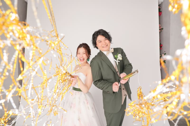 実は6本お持ち込み頂いたのですが、飛距離のすごいクラッカーだったので1枚目に撮ったものはおふたりの驚いているお顔でした!