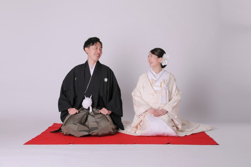 定番の正座ショットも!お二人の笑顔がとっても素敵です♪