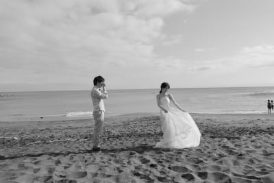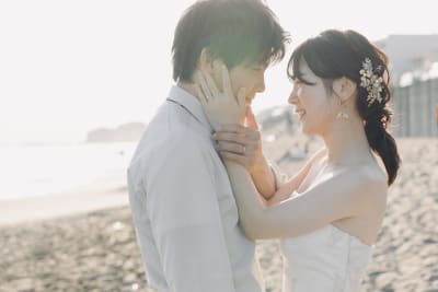 次は海へ移動して、おふたりらしさの溢れるお写真を!! 楽しいが伝わってきます!!