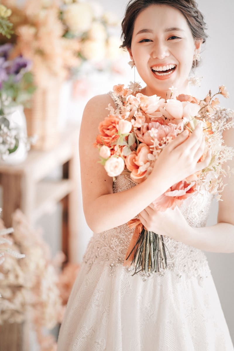 真似したいブーケの持ち方! ブーケをお顔の近くでもつことで、より華やかに可愛らしい雰囲気のお写真い仕上がります(^^) 背景にもピッタリですね!