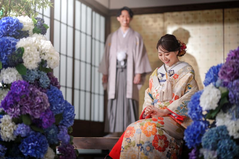そして屋内庭園スタジオもリニューアル!今の時期にぴったりな紫陽花が仲間入りに! 梅雨の時期でも天気を心配することなく、紫陽花とお写真が取れちゃいます!
