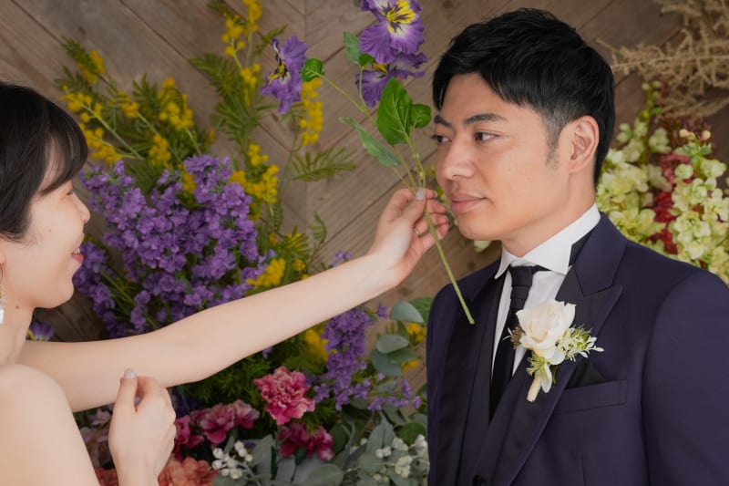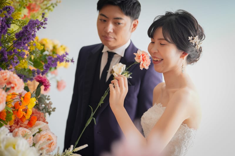 一面お花の壁が登場!新宿店ハウススタジオで撮影する洋装ウェディングフォトプラン