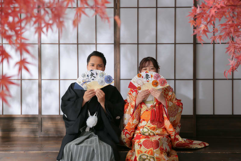 新宿店の本格的な茶室スタジオで撮影する、和装の結婚写真