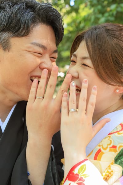 ジャーン!!こちらは指輪ショット!キラキラと光る指輪と新婦様のネイル☆やはりここでもお二人の笑顔が光りますね☆