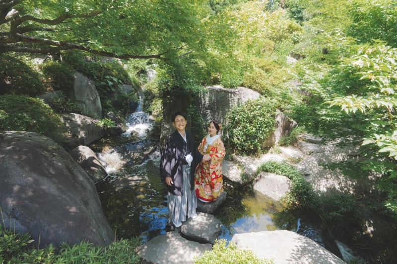 白無垢も色打ち掛けも緑の中にとても綺麗に映えます^^