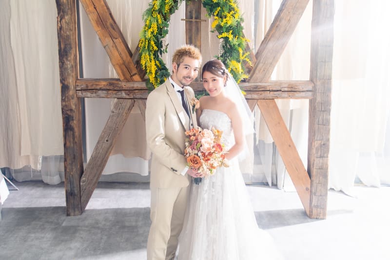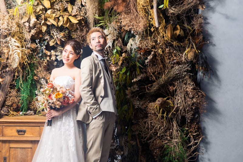 一面お花の壁が登場!新宿店ハウススタジオで撮影する洋装ウェディングフォトプラン