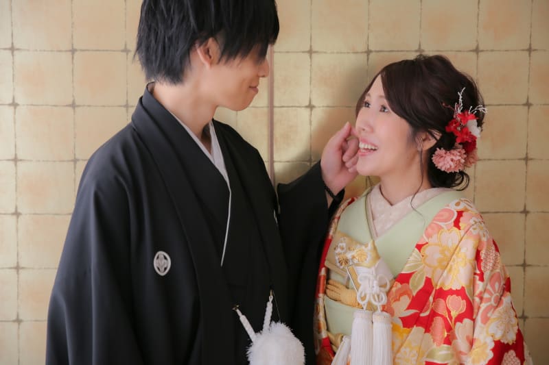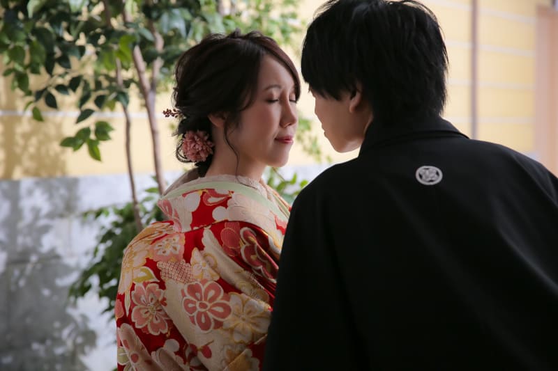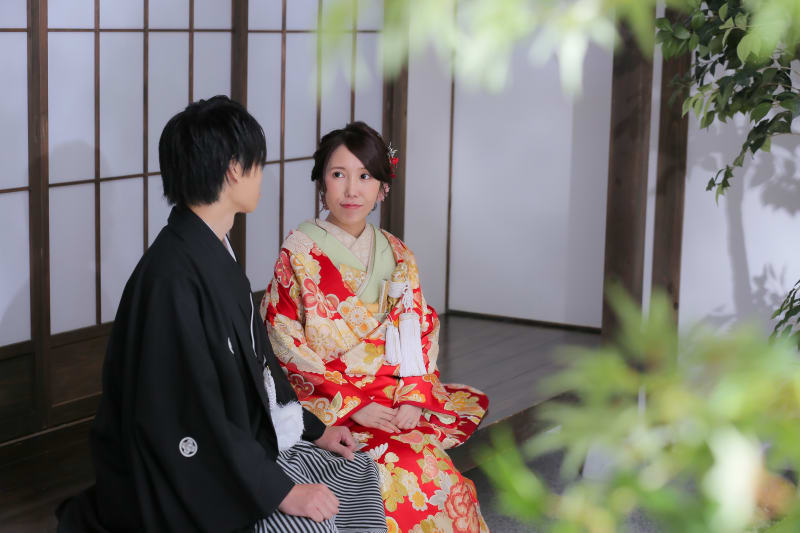 新宿店の本格的な茶室スタジオで撮影する、和装の結婚写真