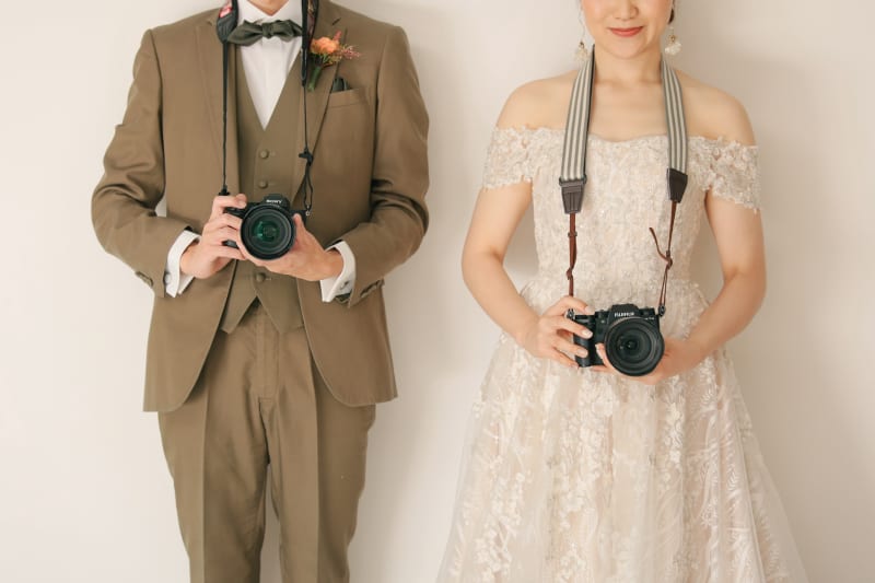 洋装のハウススタジオではお二人の共通のご趣味である、カメラをお持ちこみいただきました!