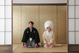 新宿店の本格的な茶室スタジオで撮影する、和装の結婚写真