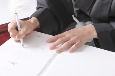 お持ち込みの小物や結婚署名書の記入も思い出に!! おふたりともお疲れ様でした!!