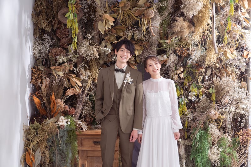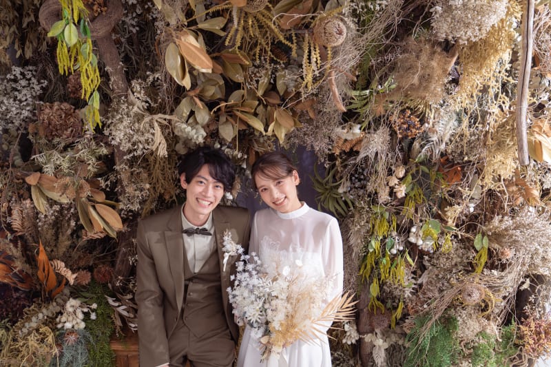 ドライフラワーを混ぜて飾り付けられたこちらの背景。