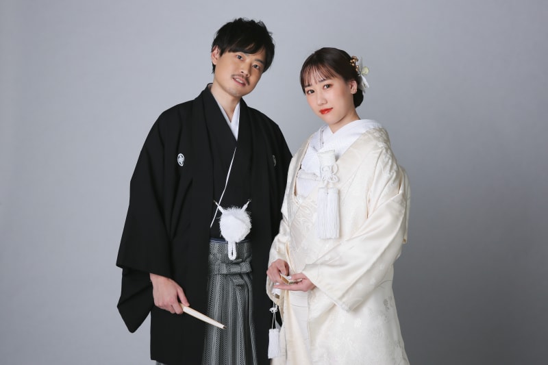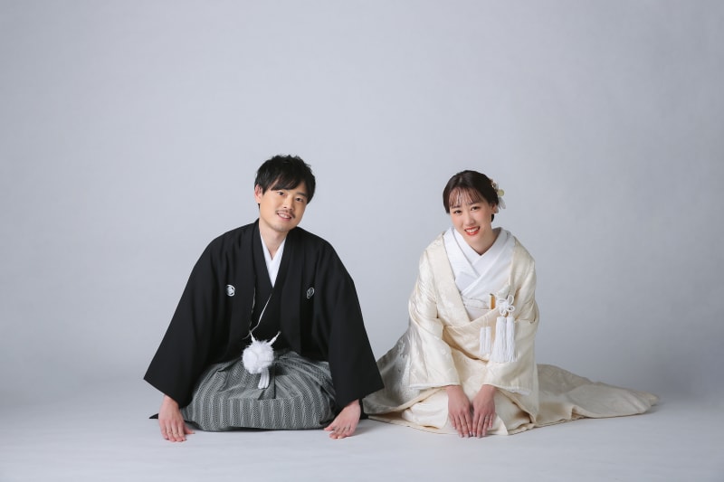 和装スタジオプラスでは、かっちりとしたフォーマルショットはもちろん、ライティング・お二人のお持ち込み小物によってバリエーションは様々です。
