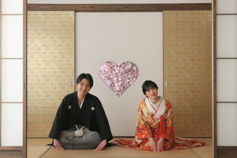 新宿店の本格的な茶室スタジオで撮影する、和装の結婚写真