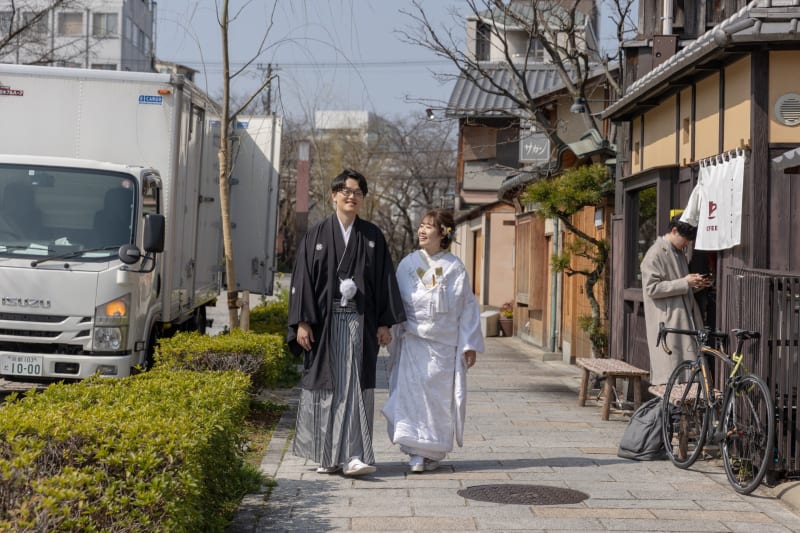 普段お二人で歩く時、新郎様が決まって車道側を歩かれるようで、それがわかるようなお写真を撮りたいとのことで