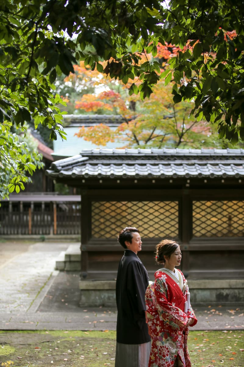 紅葉も色づき始め、オレンジや黄色、緑などカラフルで華やかなフォトウェディングになりますね。
