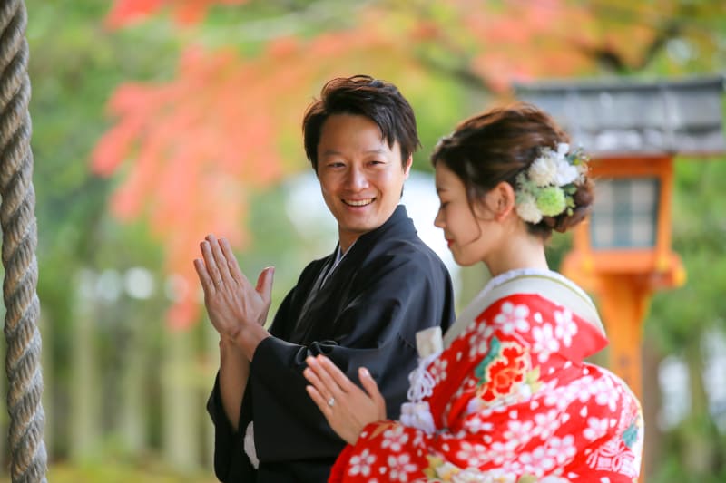 境内でお参りしたりしても可愛いウェディングフォトになります。