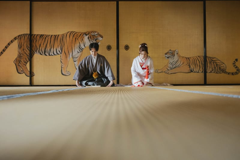 定番の正座カットも畳と虎の襖絵もあいまって、とても素敵な雰囲気で撮影いただけます。