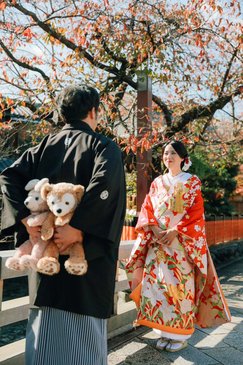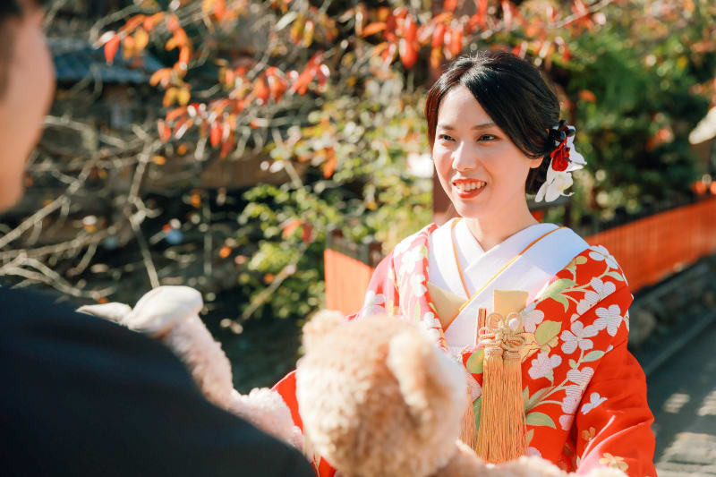 ガーランドや夫婦扇子が人気ですが、おふたりにとって思い出のあるものを持って来ていただくのもよりおふたりらしい写真になりますね!