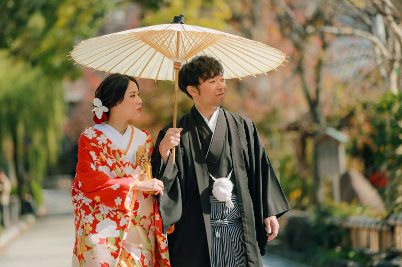 続いては和傘を使っての撮影!仲良くお散歩している一枚です^^
