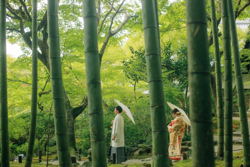 竹林での1枚!生命力を感じる新緑の中、和装での撮影をお楽しみいただけます。
