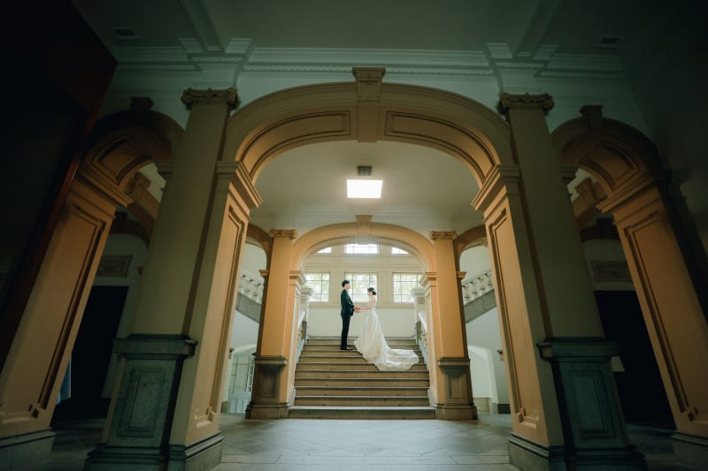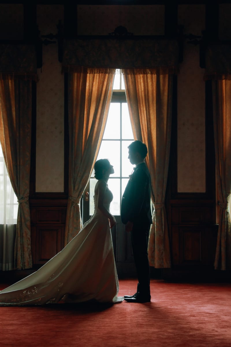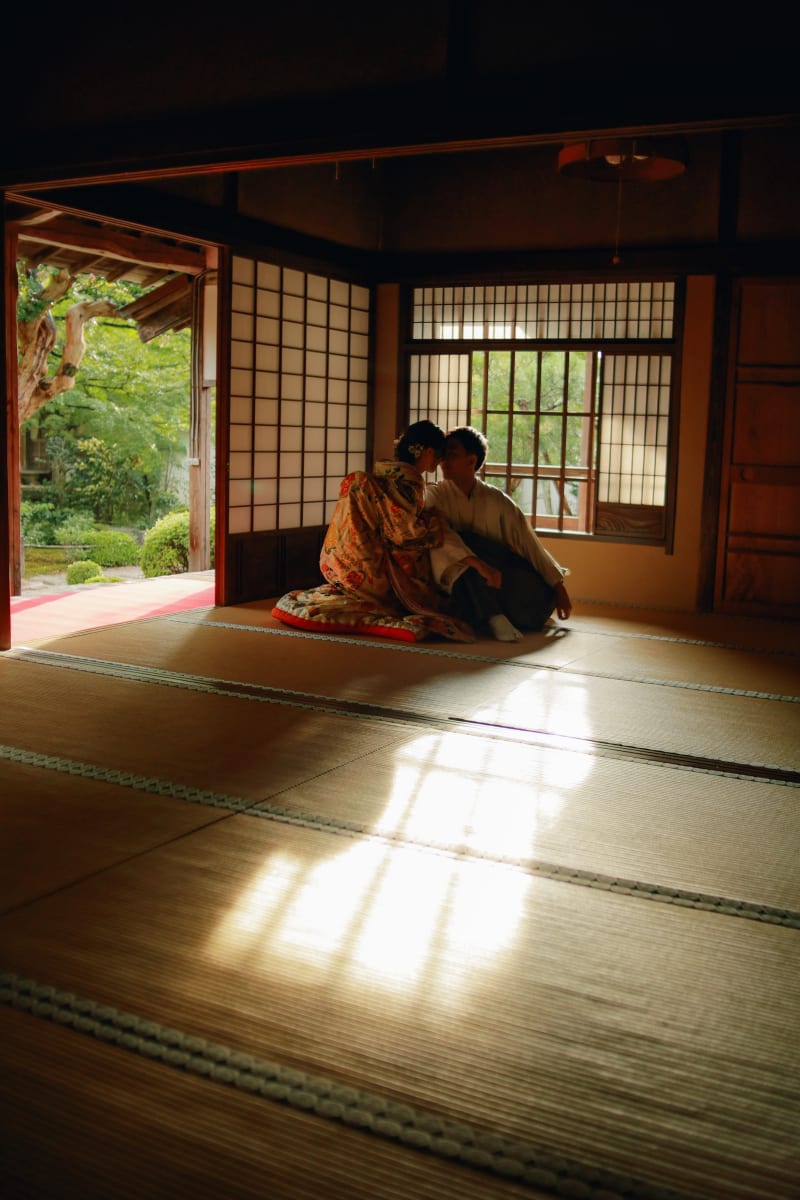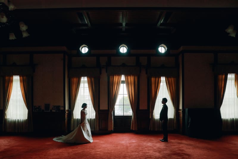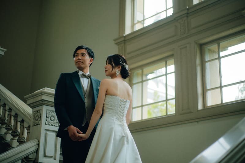 屋内撮影では落ち着いた雰囲気がお2人を包み込みます。