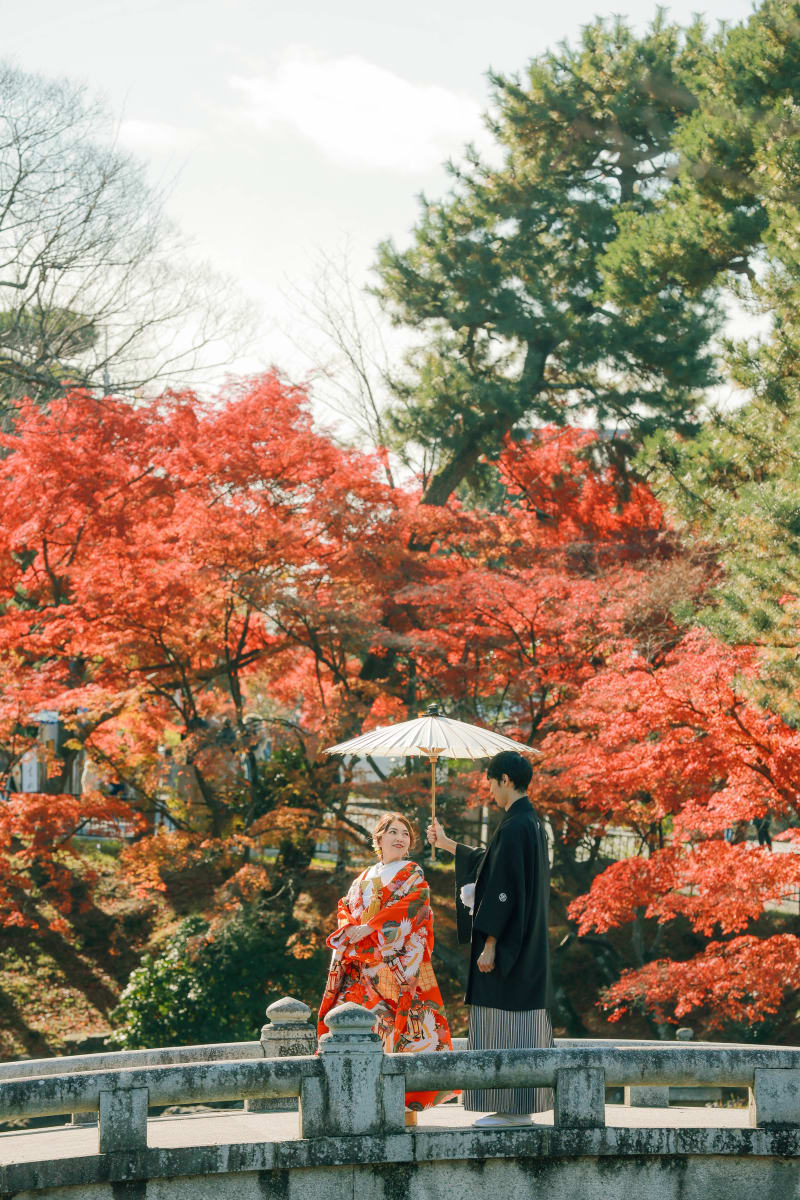 スタジオTVB京都店です。本日は紅葉と青空が広がる1日の撮影をご紹介いたします!