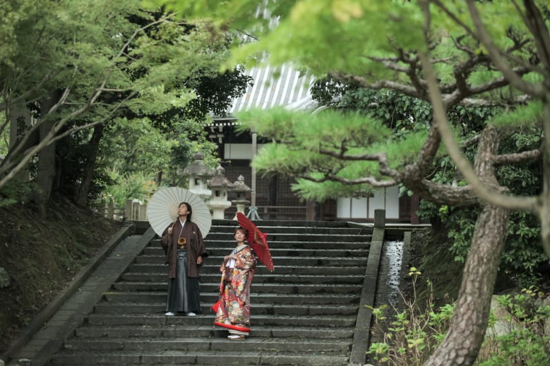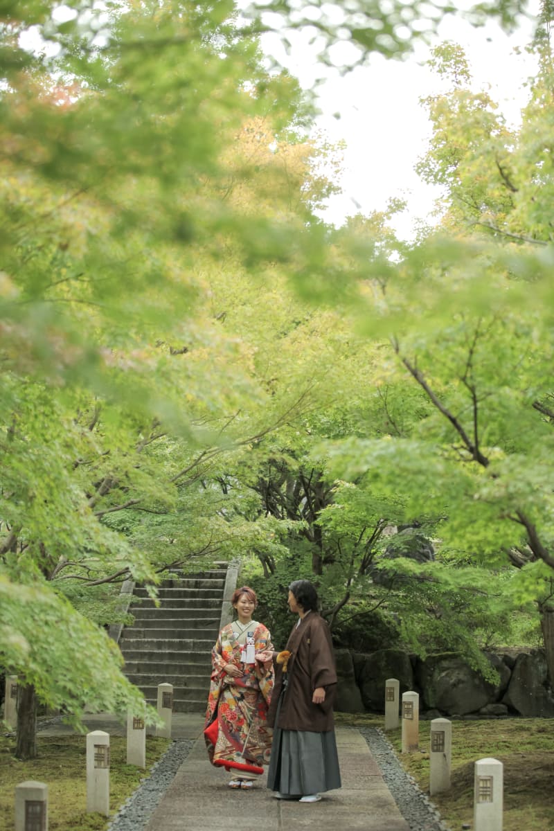 広い境内には、四季折々の美しい景観を楽しみながらの結婚写真撮影ができちゃいます。