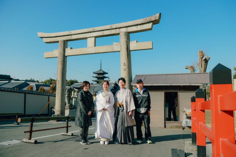 五重塔を背景に撮影。和傘と五重塔が合っていますね!